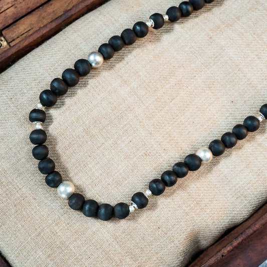 Silver Tulsi Kunti Mala 20Inch Black #131