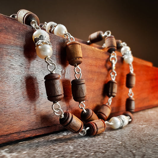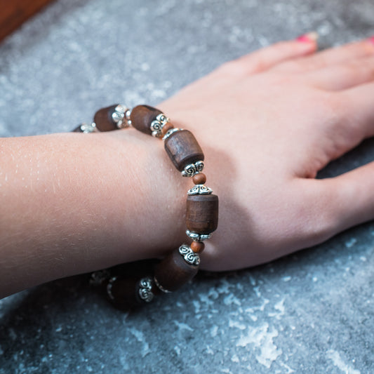 Silver Tulsi Kunti Mala Brown Barrel #S119