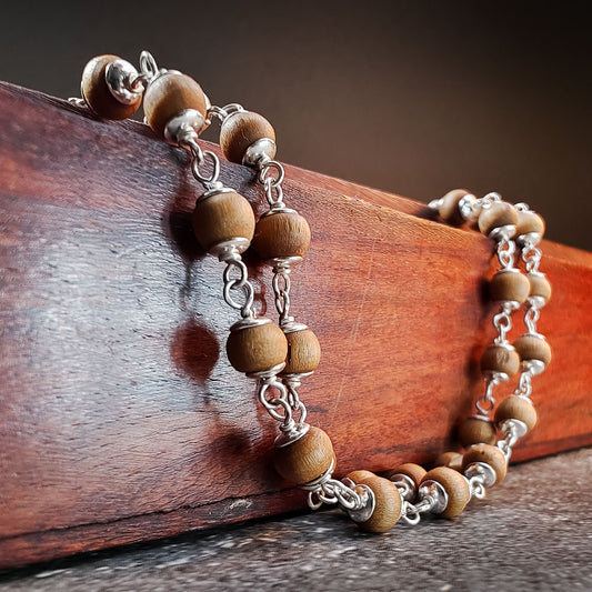 Silver Tulsi Kunti Mala 20Inch Light Brown #133