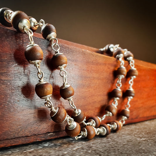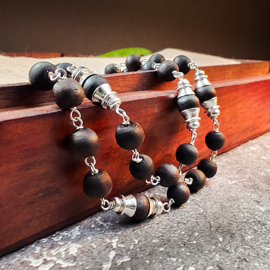 Silver Tulsi Kunti Mala 20Inch Brown #132