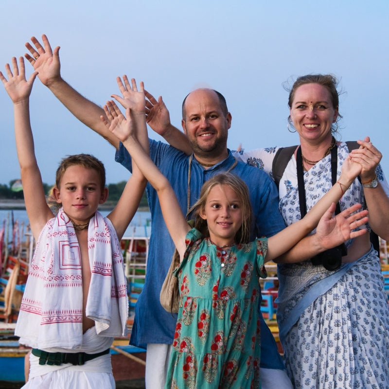 We are a family of four — originally from Germany, now living in the holy land of Mayapur, India since 2015.