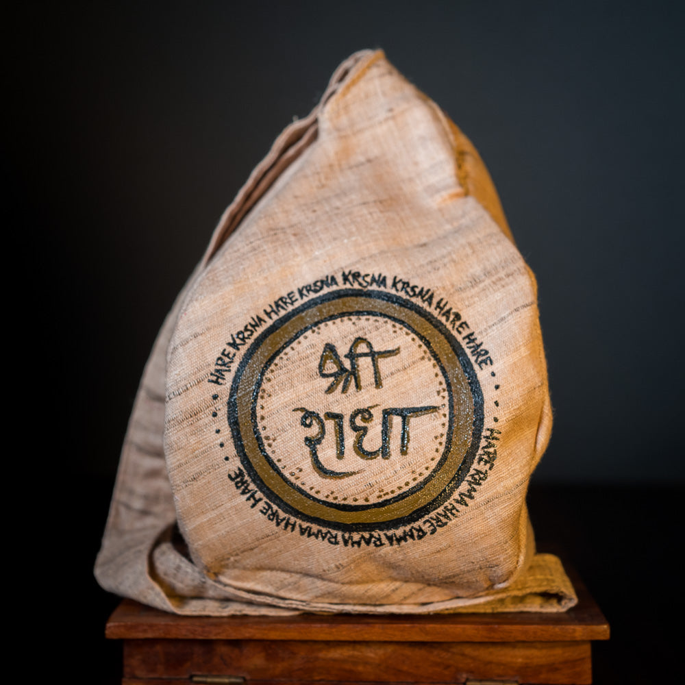 Handpainted with love by devotee artists from Mayapur, on a special fabric using a technique which keeps the paint on for a long time, high-quality stitching and a premium chain which sits snug and keeps your belongings secure. Good for at least 50 washes. Please wash by hand gently with a mild detergent in cold water and air dry. Do not bleach, and do not use fabric softeners/other harsh chemicals.