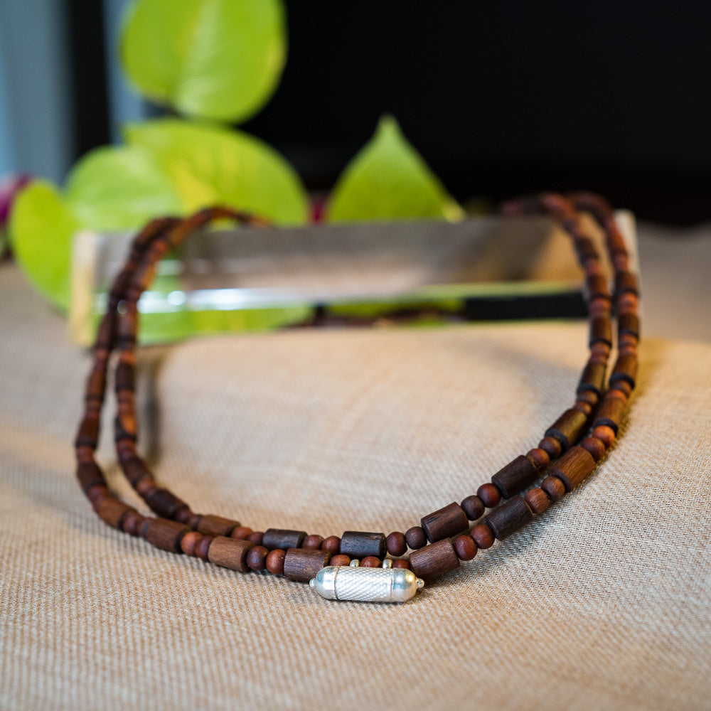 This handcrafted Kavacha necklace features sacred Tulasi beads and a silver amulet containing a written mantra. Each Kavacha is prayerfully offered to Lord Narasimhadeva at the ISKCON temple in Sri Mayapur Dham, making it a powerful and protective spiritual accessory blessed in the holy dhama.